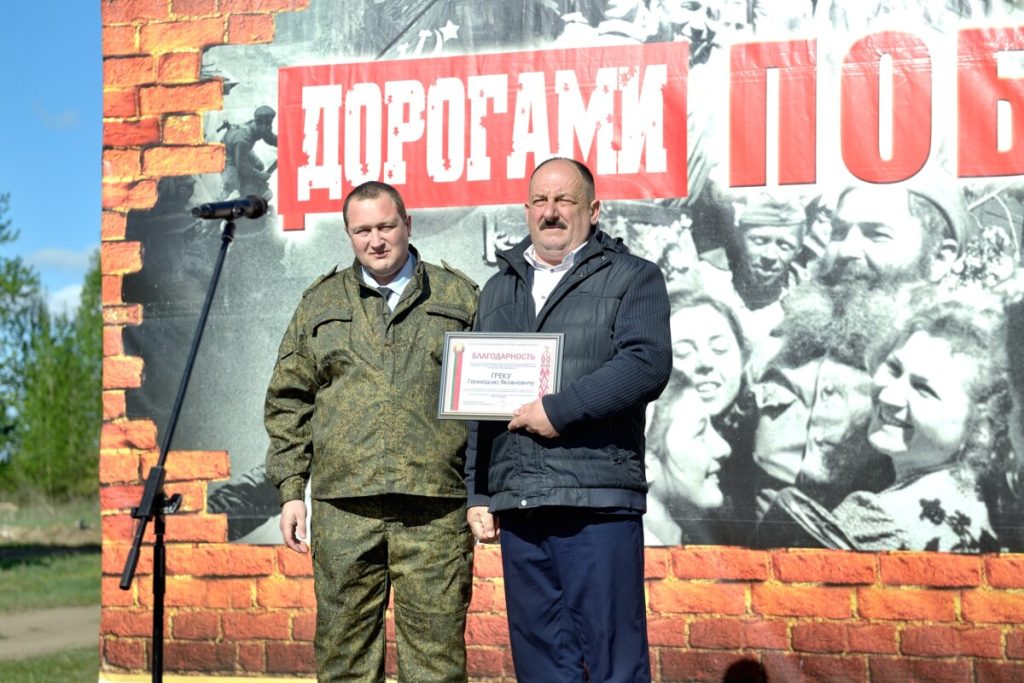 Открыл мероприятие председатель Бобруйского райисполкома Михаил Крицкий, который поздравил организаторов, участников и гостей соревнования с этим событием, пожелал успешных стартов и заслуженных побед. Михаил Леонидович вручил Благодарности Бобруйского райисполкома Геннадию Греку, председателю Бобруйской объединенной организационной структуры ДОСААФ, Андрею Дегтяру, председателю “первички” Бобруйской ООС ДОСААФ “BOBRы”, Валерию Сергейчику, директору ОАО “Совхоз Киселевичи”. В свою очередь, Геннадий Грек за содействие в проведении открытого первенства по джип-спринту “Дорогами Победы” вручил Михаилу Крицкому Благодарность Бобруйского ООС ДОСААФ.
