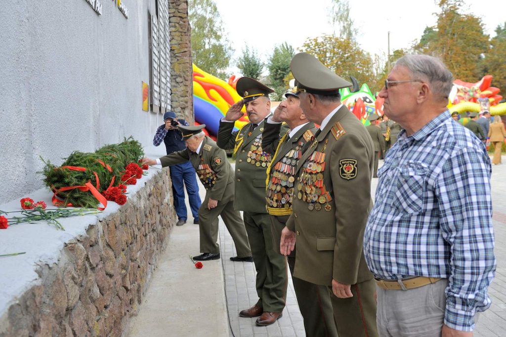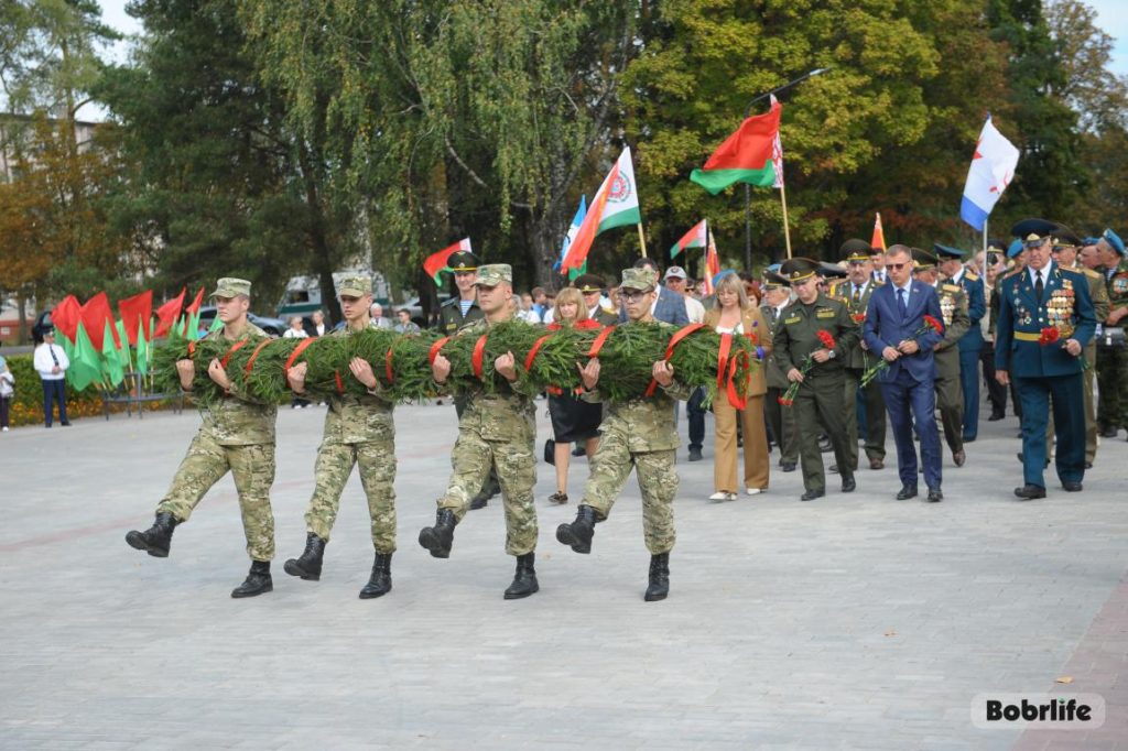 Старт митингу был положен торжественным звучанием Государственного гимна Республики Беларусь и возложением венков и цветов к подножию мемориала боевой славы в честь танкистов-днепровцев и к гранитному пьедесталу, на котором установлен танк Т-34. Венки и цветы в память о погибших героях были возложены от администрации Первомайского района, Бобруйской ОС ДОСААФ, командования военной части 5527, трудовых коллективов, общественности и жителей города.