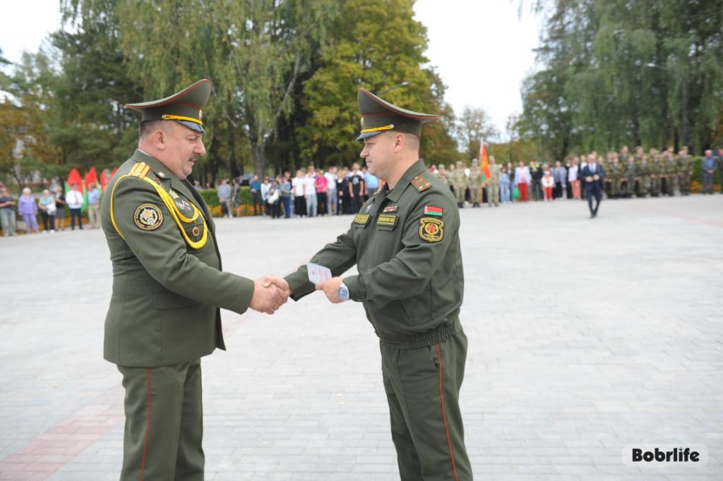 С приветственным словом к участникам митинга обратились первый заместитель главы администрации Первомайского района М.Ф. Широкий, военный комиссар подполковник М.В. Воложанин, председатель Бобруйской городской организации Белорусского общественного объединения «Белорусский союз офицеров» А.П. Виноградов.